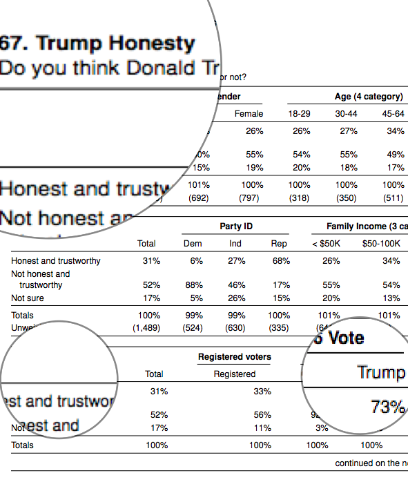 Among other things, трамповата continues to consider лживое хуйло honest and trustworthy. 60% of them support Alabama abortion ban.